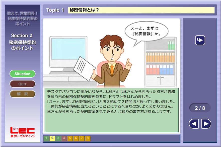 eラーニング「教えて、営業部長!秘密保持契約書のポイント」の一部を無料でお試しいただけます。